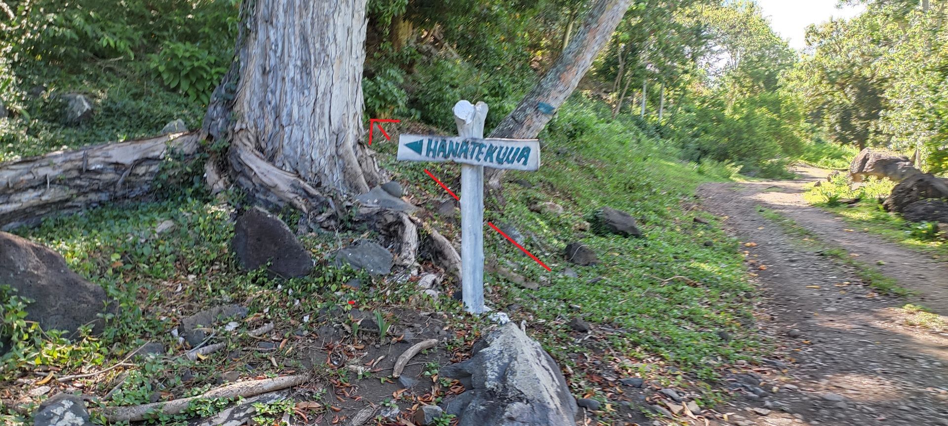 Rendez-vous au village de Hanapaaoa en voiture et Garez vous dans le village près de la plage.